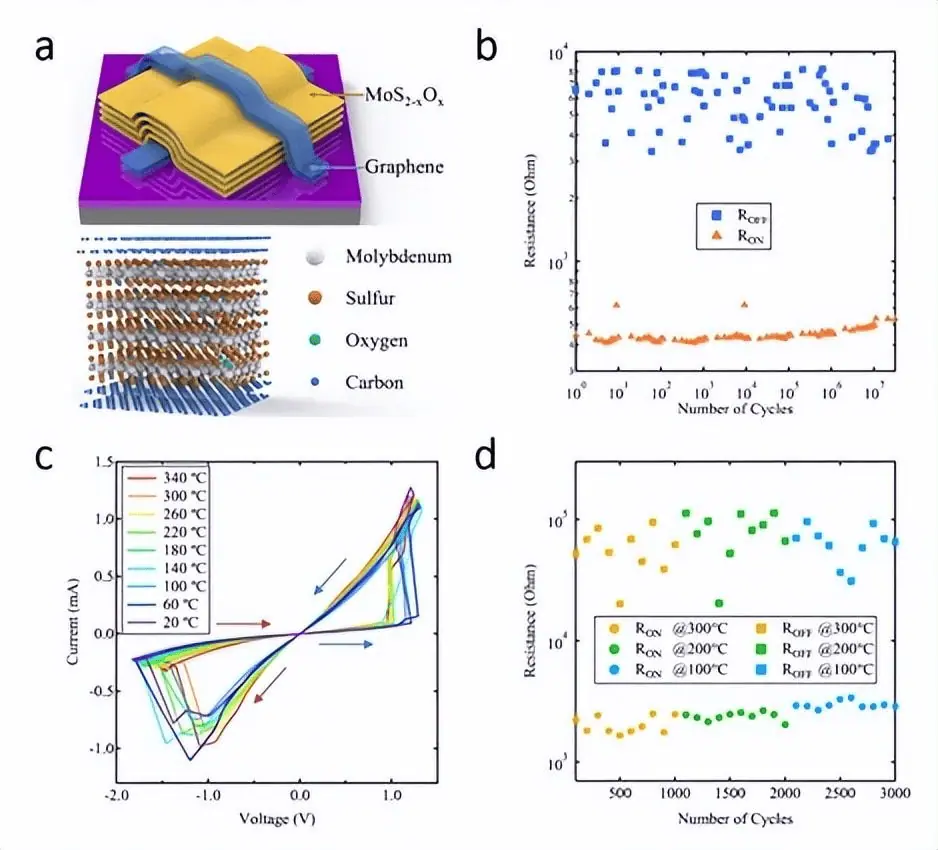 In reality, high-temperature memory devices have been capable of handling up to 200°C since before 2018, and research on memories that can operate beyond 200°C remains at the forefront of technology. In 2018, a research group led by Professor Miao Feng from Nanjing University and others from the University of Massachusetts developed a memristor that could operate at 340°C. This device used a two-dimensional layered MoS2-xOx-graphene sandwich structure to achieve high robustness and withstand ultra-high temperatures and strong stress.