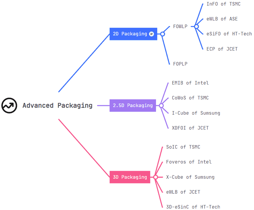 At the moment, advanced packaging can be classified into three types: 2D packaging, 2.5D packaging, and 3D packaging.