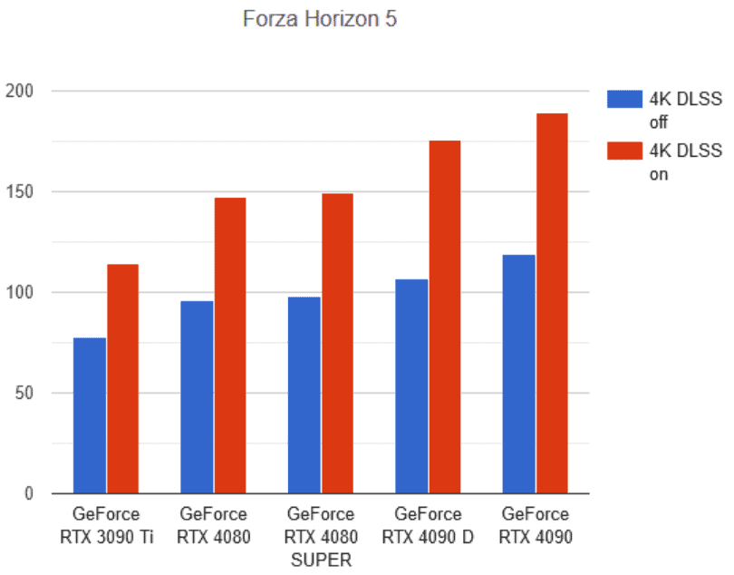 Forza Horizon 5 among GeForce RTX 3090 Ti, GeForce RTX 4080, GeForce RTX 4090 SUPER, GeForce RTX 4090D, and GeForce RTX 4090