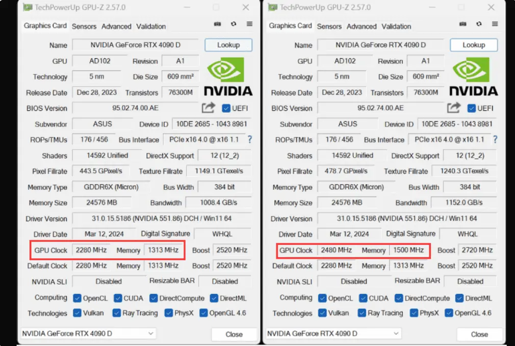 Theoretically, if the GeForce RTX 4090D could be appropriately overclocked to improve performance by about 10%, then its performance could roughly match that of the GeForce RTX 4090.