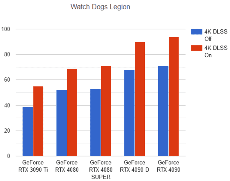 Watch Dogs Legion among GeForce RTX 3090 Ti, GeForce RTX 4080, GeForce RTX 4090 SUPER, GeForce RTX 4090D, and GeForce RTX 4090