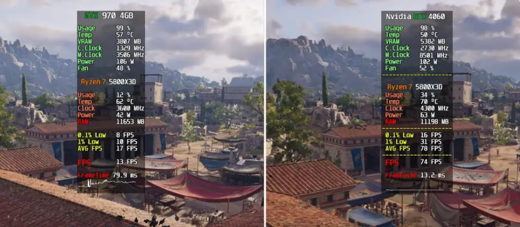⬆️ Assassin’s Creed Odyssey on GTX 970 AND RTX 4060 (Image Credit: Internet)