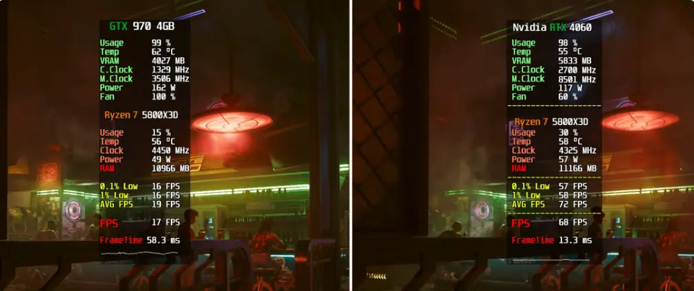 ⬆️ Cyberpunk 2077 on GTX 970 AND RTX 4060 (Image Credit: Internet)
