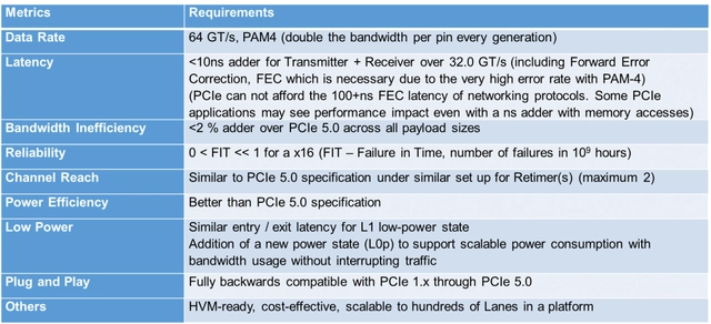 PCIe 6.0 specification objective requirements