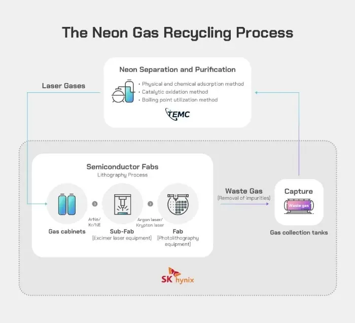 SK Hynix announced its collaboration with South Korean specialty gas company TEMC to develop the semiconductor industry’s first neon gas recovery technology.