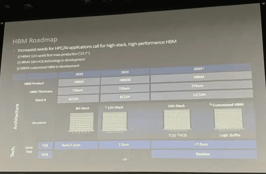 Kim stated that Samsung Electronics has successfully produced a 16-layer stacked HBM3 memory using hybrid bonding technology. This memory sample functions properly and the 16-layer stacked hybrid bonding technology will be utilized for the mass production of HBM4 memory in the future.