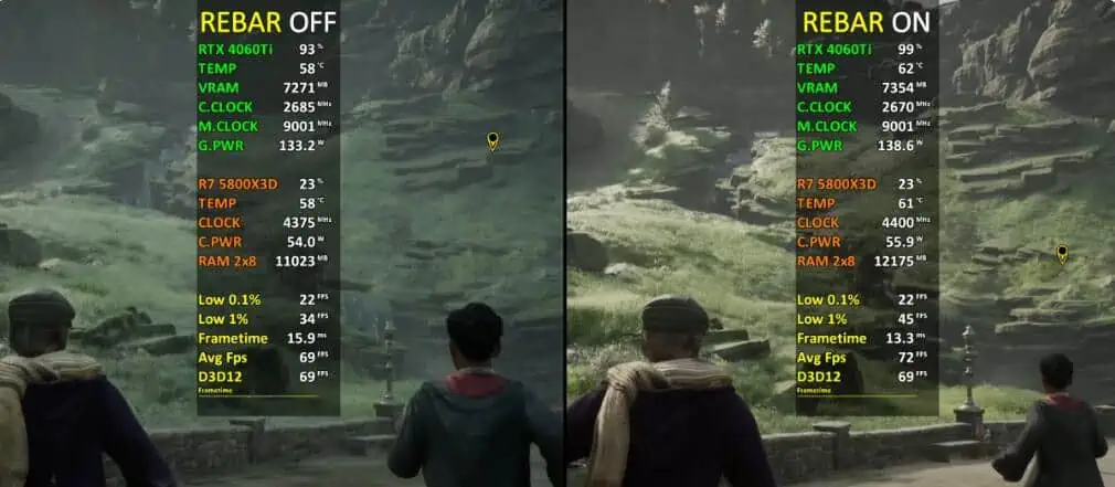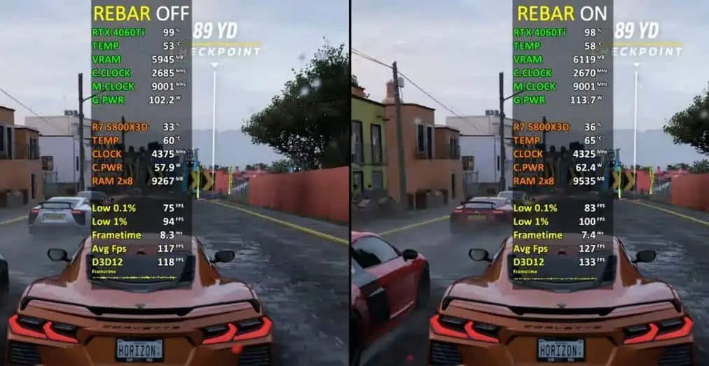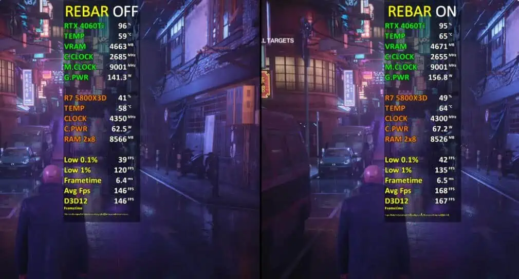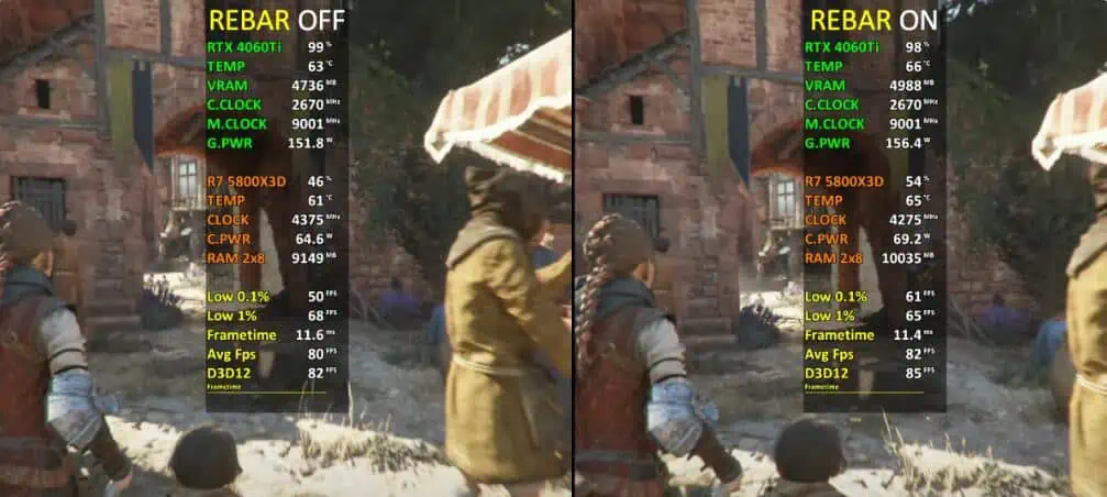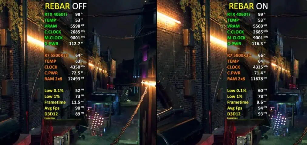 In this game, the performance gain with Resizable Bar enabled is negligible, showing only a minor improvement in frame rate.
