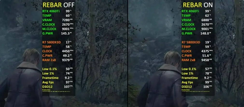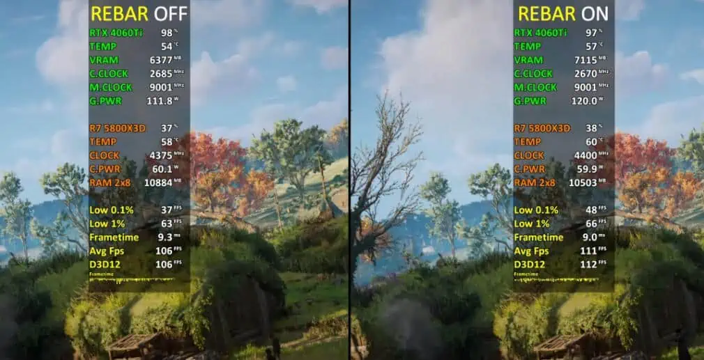 In this game, the performance improvement with Resizable Bar enabled is marginal.