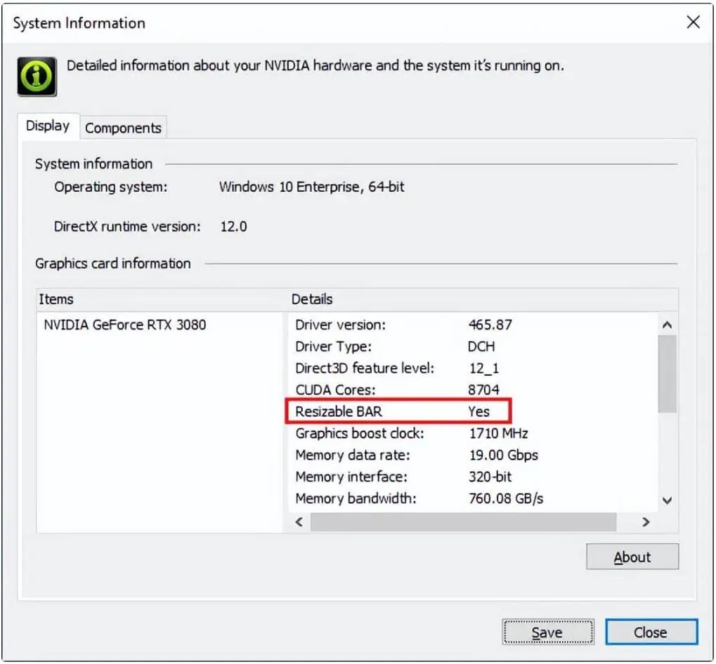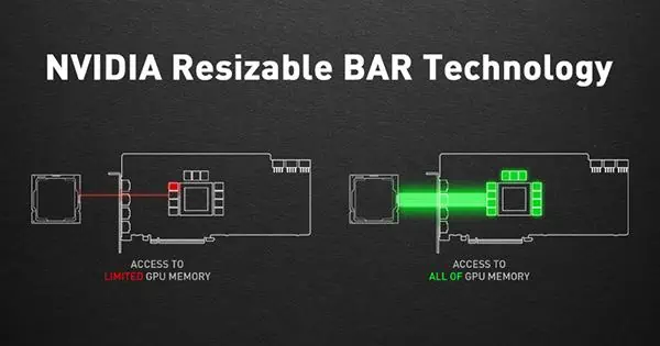 Resizable BAR is a GPU acceleration technology that allows the CPU to access the entire system memory (similar to AMD’s SAM direct memory access technology). The graphics card can also directly access all memory storage areas in the computer system, thereby shortening the time to transfer data between memory and VRAM, reducing the communication delay between the GPU and CPU, and improving performance.