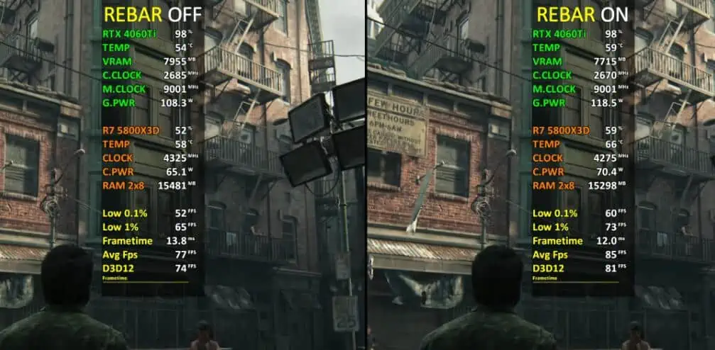 In “The Last of Us Part I,” there’s a noticeable improvement in both frame rate and frame time when Resizable Bar is enabled.