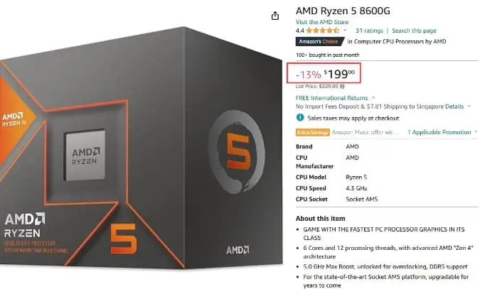 AMD Ryzen 5 8600G Prices on Amazon