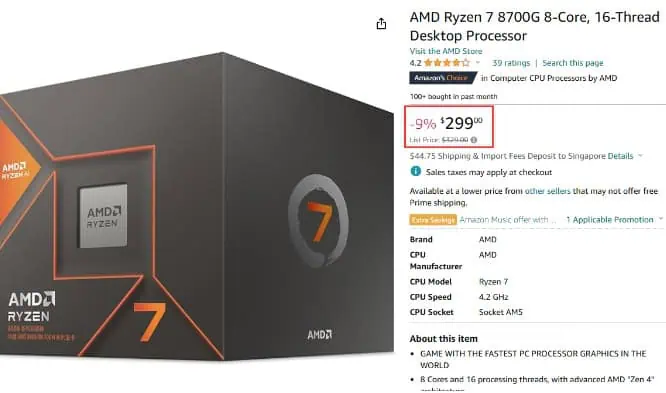 AMD Ryzen 8700G Prices on Amazon