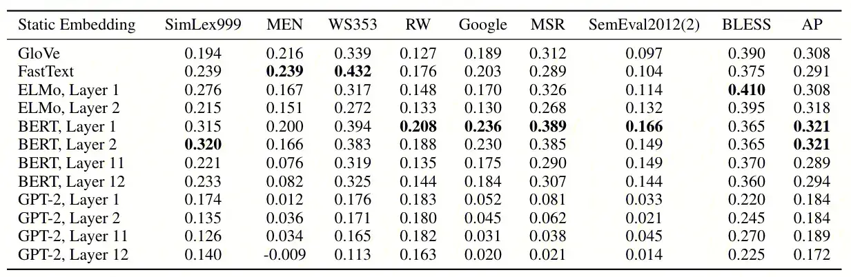 Regarding the first question, the research paper “How Contextual are Contextualized Word Representations? Comparing the Geometry of BERT, ELMo, and GPT-2 Embeddings” conducted experiments comparing the effects of different layers of BERT and GPT, as shown in the following table.